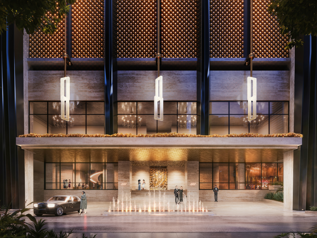 Every aspect of 888 Brickell, from the lobby to the private dining spaces, pool, and bar, will exude sophistication and elegance. The grand lobby, adorned with black marble and a striking wall of burgundy marble, will feature handmade Venetian chandeliers, casting a luminous spotlight on the epitome of luxury stay.