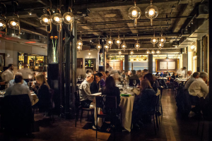 Upstairs, the restaurant offers an expansive dining space that is both elegant and comfortable. The space is decorated with dark wood, leather banquettes, and vintage light fixtures, creating an ambiance that is both timeless and modern. The restaurant is perfect for hosting large groups or intimate dinners, and the staff is always on hand to ensure that every guest has a memorable dining experience.
