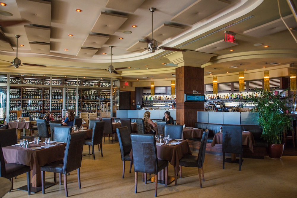 Upon entering Luca, guests are greeted by a visually stunning atmosphere characterized by wine bottles lining the walls and a variety of table options, including round and rectangular tables, booths, and chairs. The outdoor patio, which can accommodate half of the restaurant's patrons, offers panoramic views of the infinity pool and the azure waters beyond, enhancing the dining experience with a touch of tropical paradise. Local artwork adorns the walls, adding a sense of authenticity and cultural richness to the space.